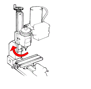 The motor is turn at 90° to its normal milling position, so the blade attached to the spindle will be parallel to the lathe bed.