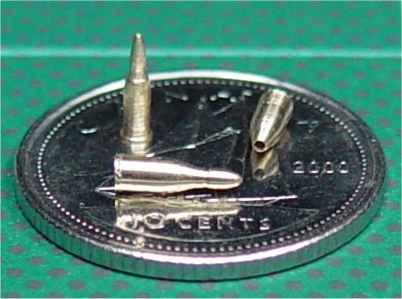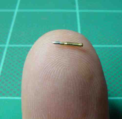 A l'échelle 1/35, c'est VRAIMENT petit. Pourtant, j'ai pu faire une cartouche creuse, comme la vrai... regardez celle qui est ouverte, elle est complètement creuse.