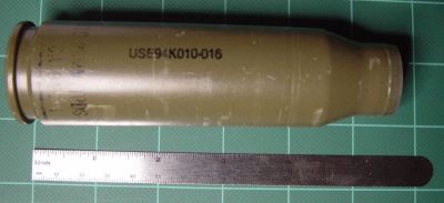 La vrai munition de Flak 38 2cm, bien plus belle que la mienne... mais bien plus grosse (20 cm de long, soit 8")
