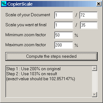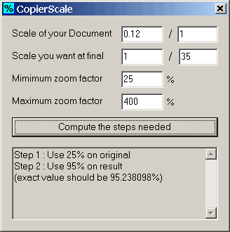 Le seul usage de ce petit outil est de calculer les étapes nécessaires pour agrandir/réduire des plans à l'aide d'un photocopieur et de ses capacités de zoom limitées. Utile à ceux aussi handicapés que moi par le calcul mental.