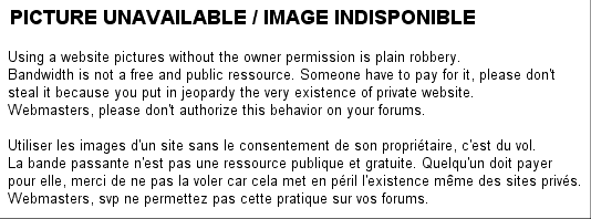 Because of a growing number of people "leeching" my pictures, directly linking them from this web site to display them in forums, in papers or as background onile, I've been forced to set some security measure on my web site to forbid that. Those people where using the bandwitdh free of publicity that I pay every month to provide the information on my web site, though limiting the number of people I could accept without paying even more money.