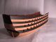 The final photos show the masking tape removed. A bit of touch up (red ochre and black) is required yet. The hull certainly now staring to look like a ship.