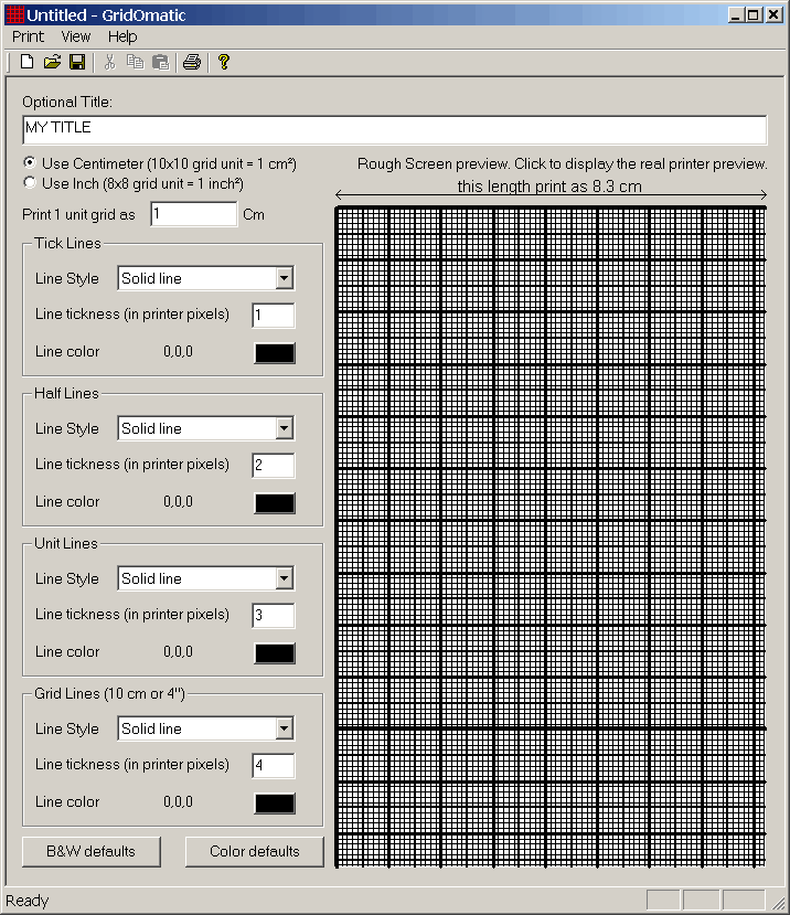 GridOmatic, imprimez votre proper papier graphique, millimétré ou en pouces à n'importe quelle échelle