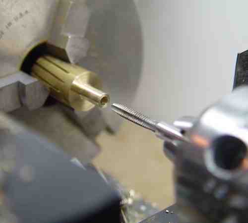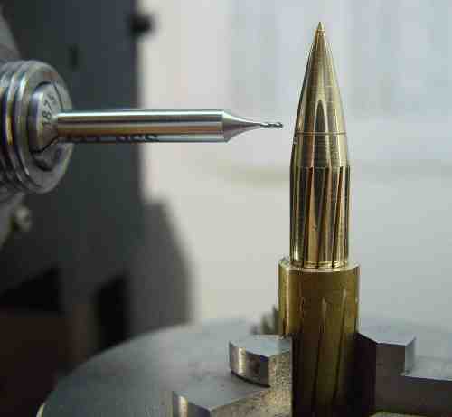 Puis, une pièce qui deviendra le futur nez de la munition est percée et taraudée.
